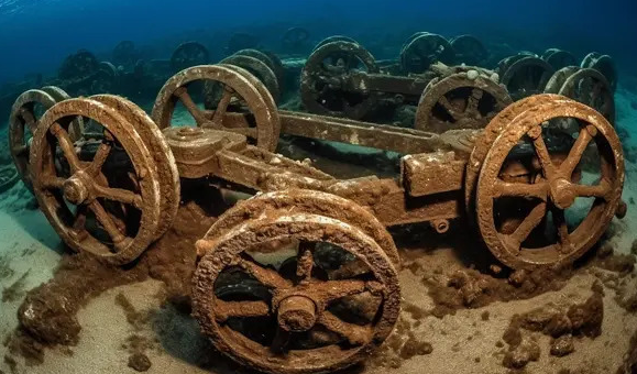 - Perfectly preserved wheels (impossible after millennia underwater)