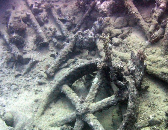 picture of a 19th century Steamship paddle wheel found in Red sea