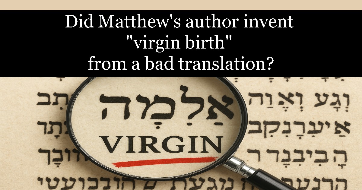 Centuries later, when Jewish scholars translated the Hebrew Bible into Greek in what became known as the Septuagint, they selected the Greek term parthenos for almāh. Parthenos could mean virgin, but it could also simply mean young woman. That ambiguity created the opening that later Christian writers walked through. The Gospel of Matthew, written anonymously decades after Jesus’ death, quotes Isaiah from the Greek version, not the Hebrew. Reading parthenos as virgin, the author presents Jesus’ birth as a prophetic fulfillment even though the original Hebrew did not say virgin and did not refer to a future messiah.